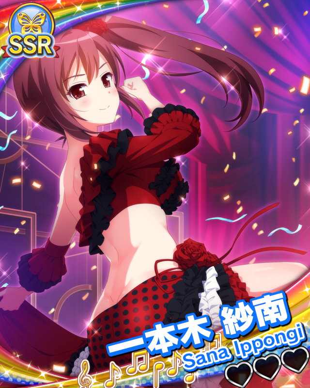 ![]() | 【Ⅰ】[ダウン者含む味方全員]全パラメータが絶大増加 :きらきらソング!・[リスク]きらきらソング!発動中効果3倍 :エールコンボ100以上で効果3倍 【Ⅰ】[ダウン者含む相手全員]全パラメータが絶大減少 【Ⅱ】[総パフォーマンスが高い順に味方バック5人]全パラメータが絶大増加 :きらきらソング!・[リスク]きらきらソング!発動中効果3倍 :味方チーム劣勢時効果3倍 【きらきらソング!・[リスク]きらきらソング!発動中70%でスキル回数消費無し】 【LvUP時:効果増加】[エール][3回] | ||||||||||||||